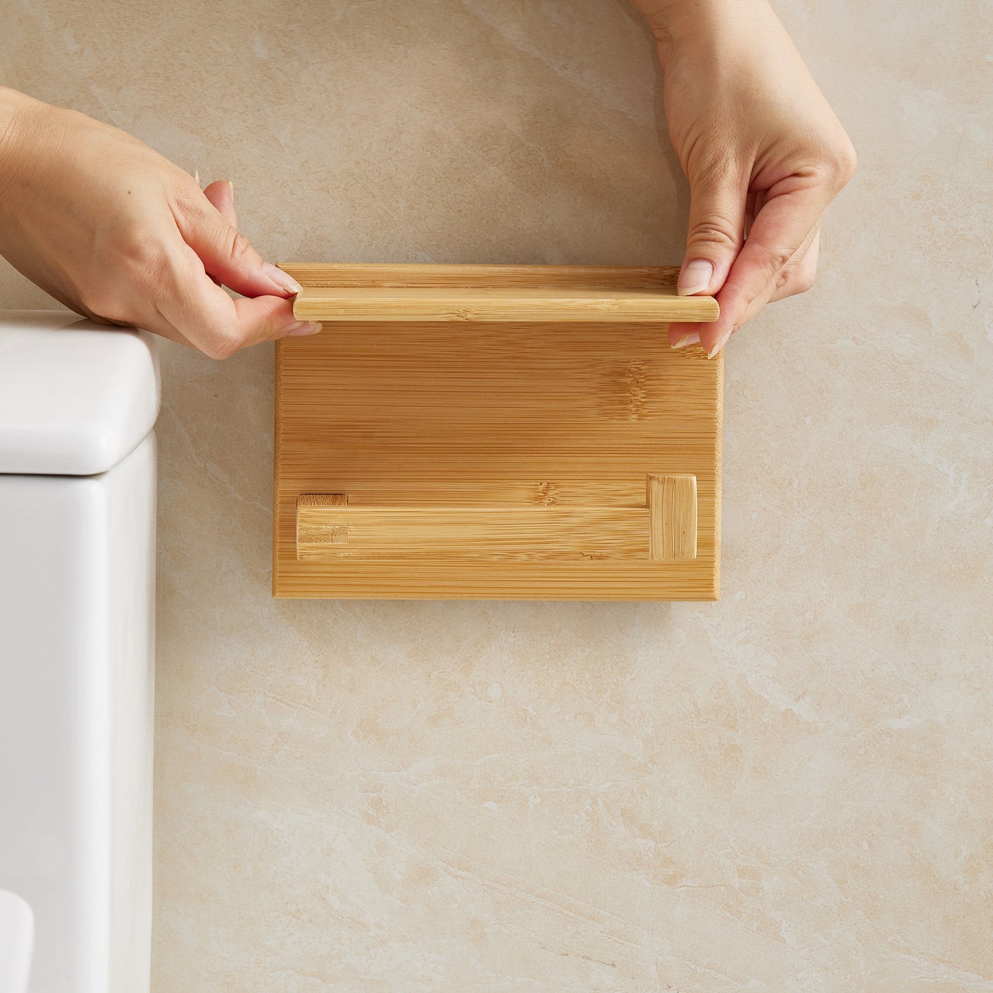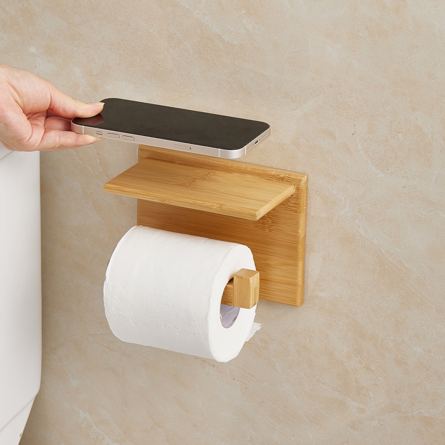 - ✔️ NO DRILLING & EXTREMELY STRONG - The DEKAZIA wooden toilet paper holder can be easily attached to all surfaces thanks to the extremely strong self-adhesive 3M pads. The toilet holder for sticking is therefore ideal for renters.