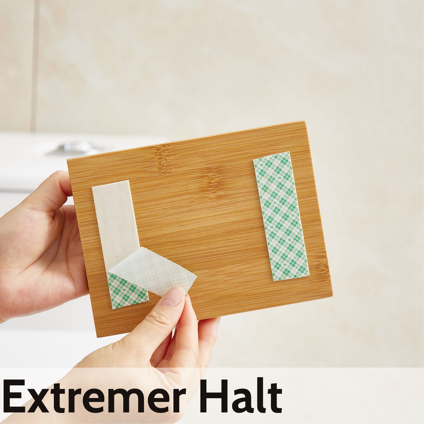 The toilet paper holder can be attached easily and without drilling . Two adhesive strips for an extra strong hold are already included.